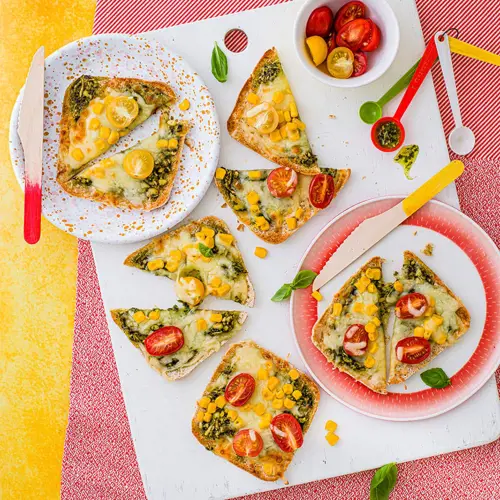 Who said sandwiches were a must-have? Replace a dry sarnie with these little pizzas which your children can help you to make in advance, adding their fave toppings!